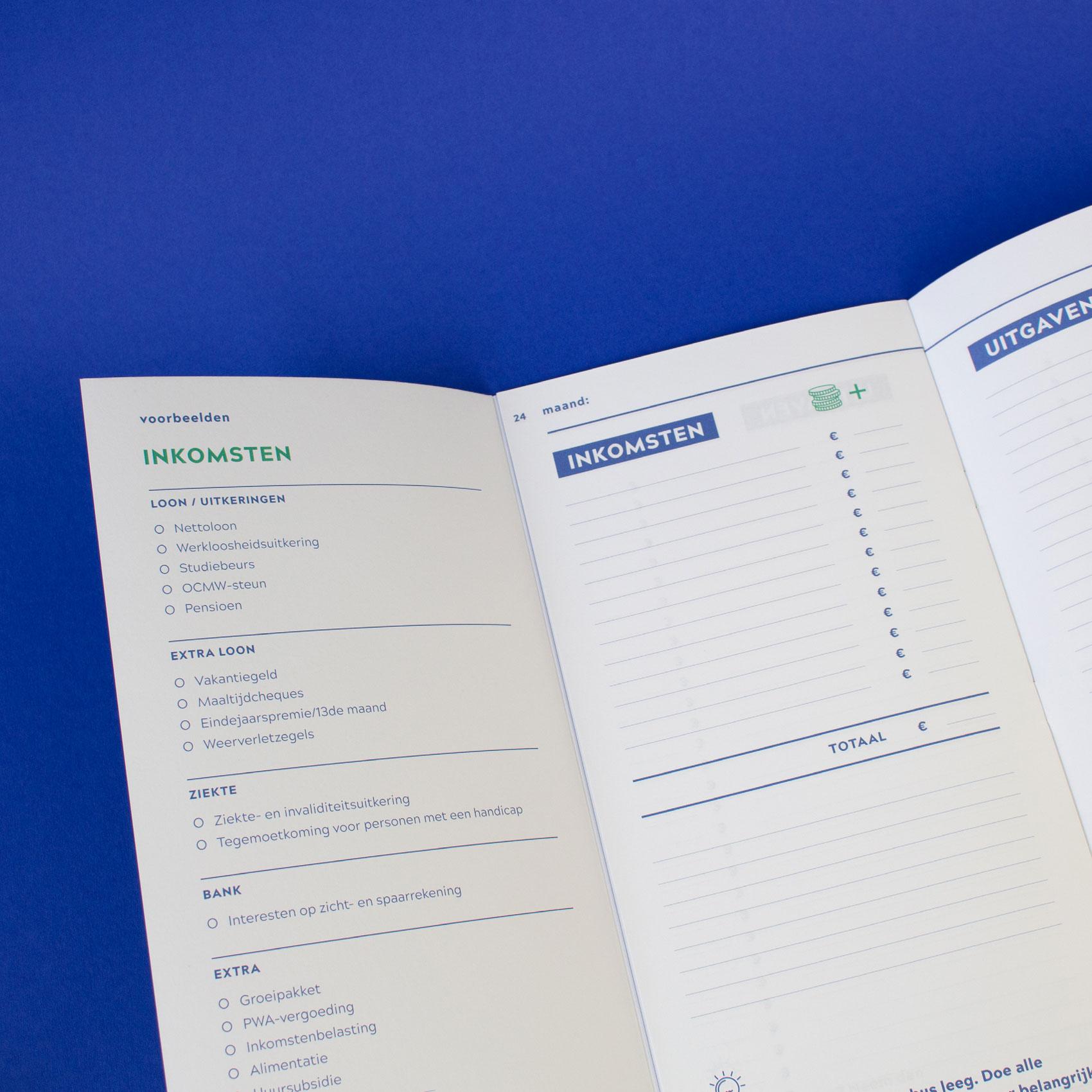We mochten voor SAM al heel wat moois maken. Zo gaven we vorm aan de budgetplanner, die bedoeld om mensen met een (vermoeden van) een verstandelijke beperking te helpen om met geld om te gaan of een zicht te krijgen in hun inkomsten en uitgaven. Met een goed doordacht grafisch ontwerp maakten we het boekje gebruiksvriendelijker.