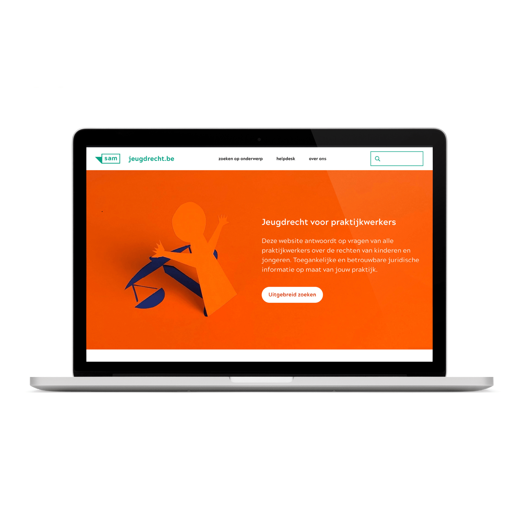 De algemene website werd gemaakt en ontworpen door de sympathieke mensen van Novation. Wij stuurden enkel bij — of noem het art direction — om SAM in volle glorie te laten stralen door zijn huisstijl. Want hoe je het ook draait of keert: wie die de huisstijl gemaakt heeft, is het best in staat om hem te vertalen naar alle communicatiedragers. Een jaar later werkten we voor de website van jeugdrecht.be (ook een onderdeel van SAM) opnieuw samen met Novation. Ze gaven ons nieuwe inzichten over Anysurfer en we creëerden samen een toegankelijke website. Tijdens het maken van die website, stelden we vast dat het niet helemaal duidelijk was hoe jeugdrecht.be zich verhoudt ten opzichte van het moedermerk SAM. Een nieuwe nood kwam naar boven. Tijd voor een merkstructuur!