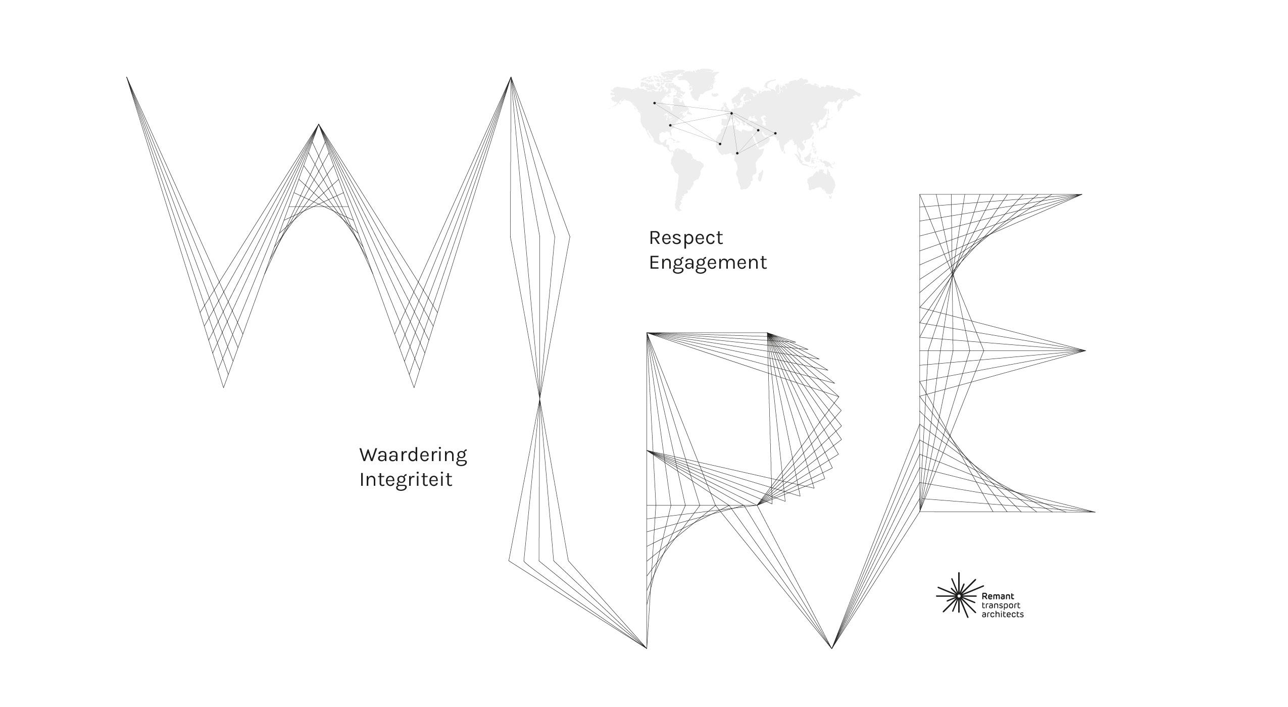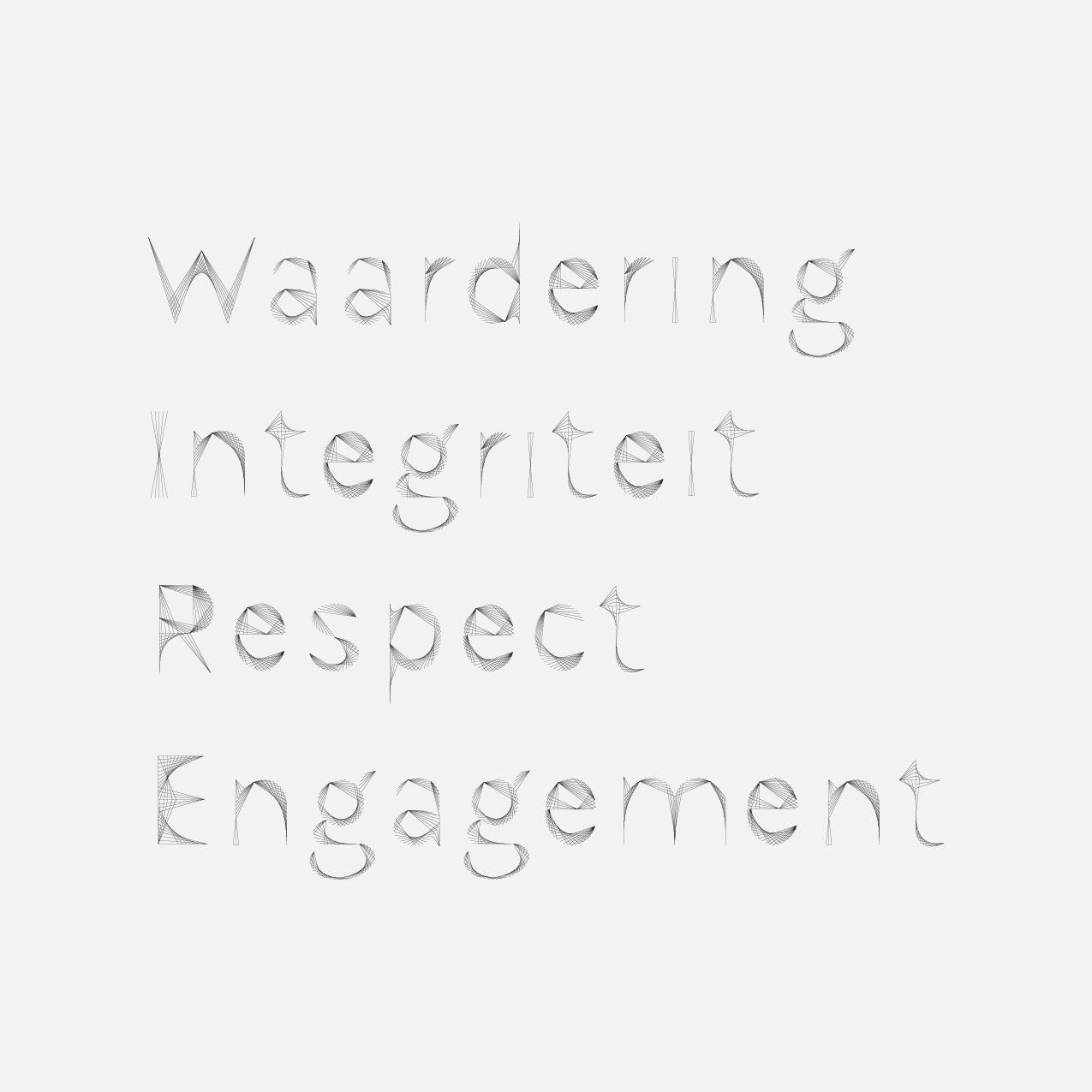 De WIRE visual en de uitgewerkte letters, zijn de visuele houvast voor het communiceren rond hun waarden. Van employers branding tot nieuwjaarskaarten zijn deze grafische tekeningen handig en mooi in gebruik.